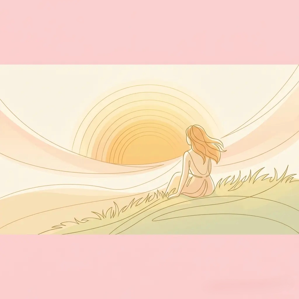 Style: Flat vector illustration, minimalist continuous line art, healing atmosphere.